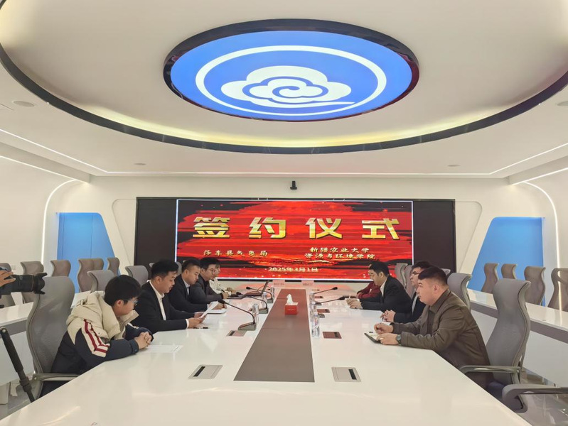 为推进产学研融合和地方气象高质量发展,2025年3月1日,新疆农业大学资源与环境学院与莎车县气象局隆重举行合作签约仪式。此次会议由莎车县气象局濮兴康主持,莎车县气象局局长李锦虎、莎车县科技局局长张丰、技术人员参会。我院党委书记巴特尔·巴克带队参会。