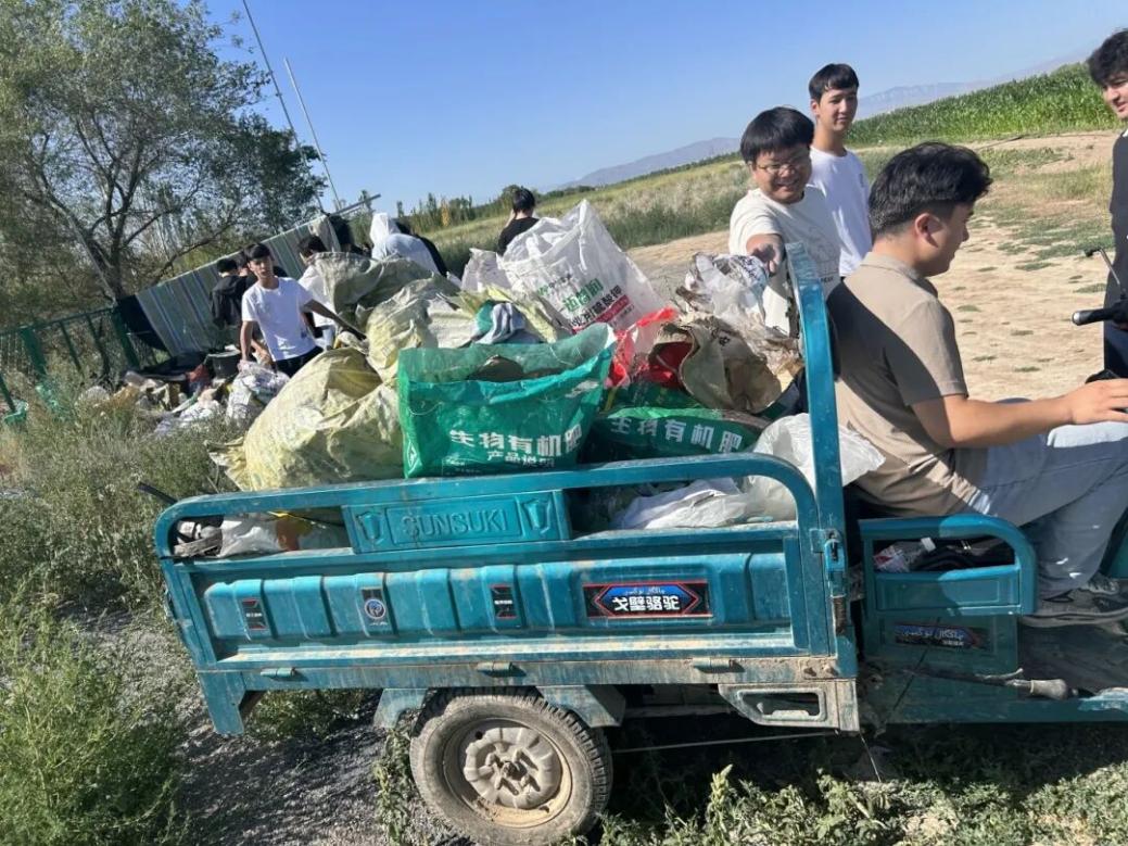 在陆港校区实践基地,麦麦提老师首先向同学们详细介绍了基地建设概况及在本硕教学中的实践育人功能。他强调,“实践基地是连接课堂理论与生态保护的桥梁,更是我们践行环保理念的‘试验田’” 。随后,同学们分组开展 “白色污染” 清理行动,对基地周边废弃塑料袋、塑料膜等难降解垃圾进行集中捡拾与分类处理,并围绕农田垃圾的来源、特征及防治策略展开热烈讨论。“农田地膜残留不仅影响土壤结构,更可能通过食物链进入生态系统。”2401 班学生王琳在讨论中提出,“源头替代可降解材料或许是破局关键。”