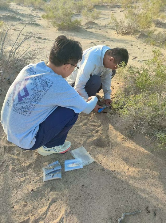 张朝铭:风沙中的修行者。在古尔班通古特,农资2302班的张朝铭参与土壤理化指标测定与植被样方调查。沙质土壤的采样极其耗力,徒步定位样方、记录植被种类与盖度,每一步都需要精准与耐心。风沙中的磨砺让他体会到农业资源与环境学的宽度:既要改良土壤,也要守护生态系统的多样性。他决心将来投身土壤改良与生态修复,用专业守护家园。