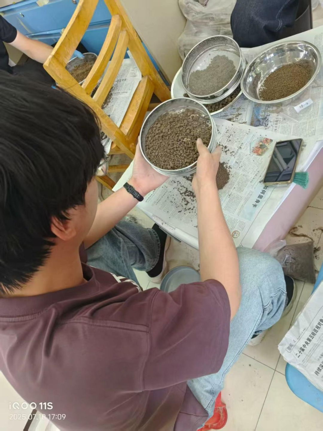 夏鑫彧:精准的艺术家。在试验基地,农资2302班的夏鑫彧负责土壤采样、配比与培育盆管理:从250公斤土壤的筛分到240个培育盆的准备,从每克试剂的精准称量到反复搅拌、均质化处理,他在重复的细节里练就科研的严谨性。这样的实践让他理解到:科研不仅靠灵感,更靠反复试验与团队协同。
