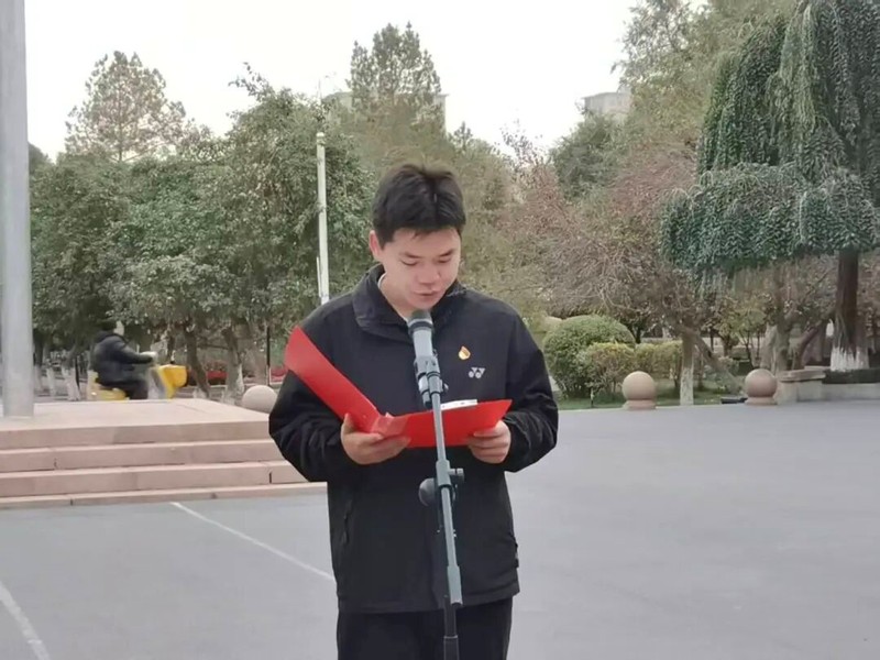 当《义勇军进行曲》的激昂旋律奏响,全体师生肃立注目。五星红旗迎着朝阳冉冉升起,随风舒展——这抹红,镌刻着中华民族的百年奋斗,也映照着新疆70年从百废待兴到百业兴旺的沧桑巨变。国歌声中,师生们眼神里满是对祖国的热爱、对这片土地的深情。