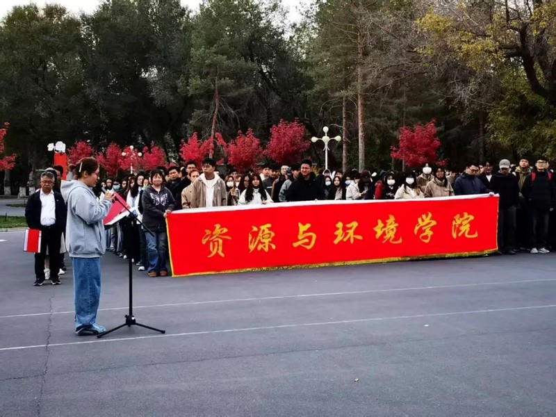 金秋十月,晨光熹微。正值新疆维吾尔自治区成立 70 周年,新疆农业大学国旗广场上,鲜红的五星红旗与师生眼眸相映,资源与环境学院在此举行 2025 年秋季学期国旗下主题教育活动,以庄重仪式共话家国情怀、共担资环使命。